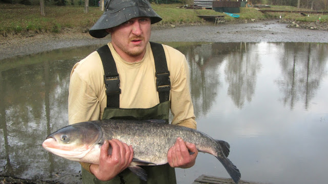 Czech Republic is sprinkled with village ponds and little lakes in which carp is bred. Sometime in November the ponds are drained of water and the carp hauled in.